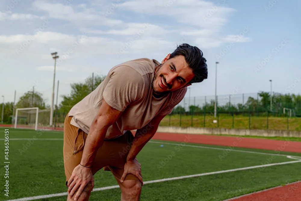 - Close-ups of hands, sneakers pressing into grass, sweat beads forming